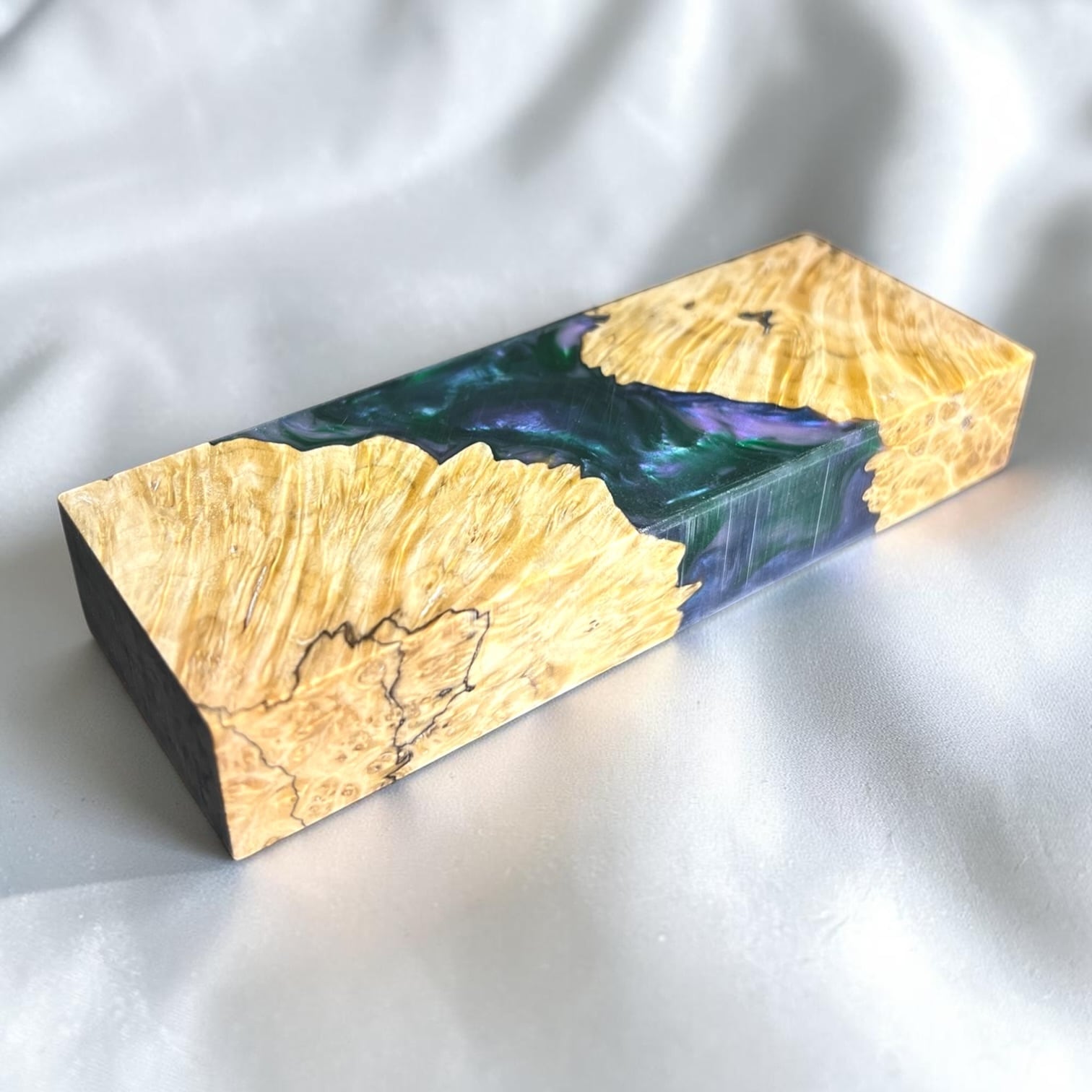 その鮮やかさや強度からナイフハンドルやペンブランクなどに、よく使用されます。