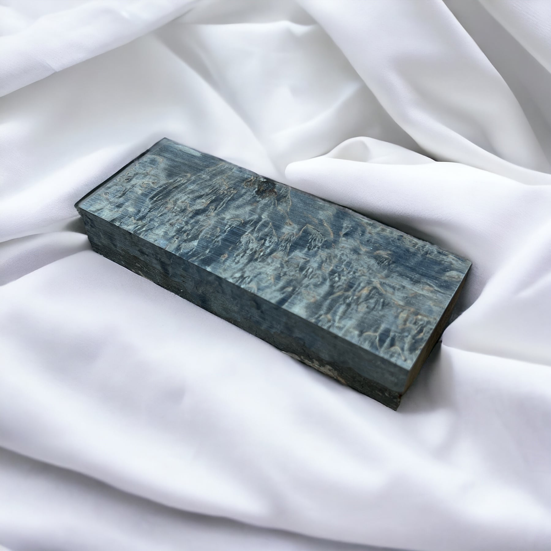 また、樹脂に着色をする事で、木材内部の密度の違いや含水率の違いにより浸透する箇所と浸透しない箇所が現れ、鮮やかで複雑な模様となります。その鮮やかさや強度からナイフハンドルやペンブランクなどに、よく使用されます。