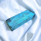 また、樹脂に着色をする事で、木材内部の密度の違いや含水率の違いにより浸透する箇所と浸透しない箇所が現れ、鮮やかで複雑な模様となります。その鮮やかさや強度からナイフハンドルやペンブランクなどに、よく使用されます。